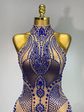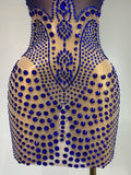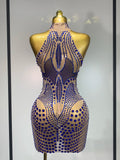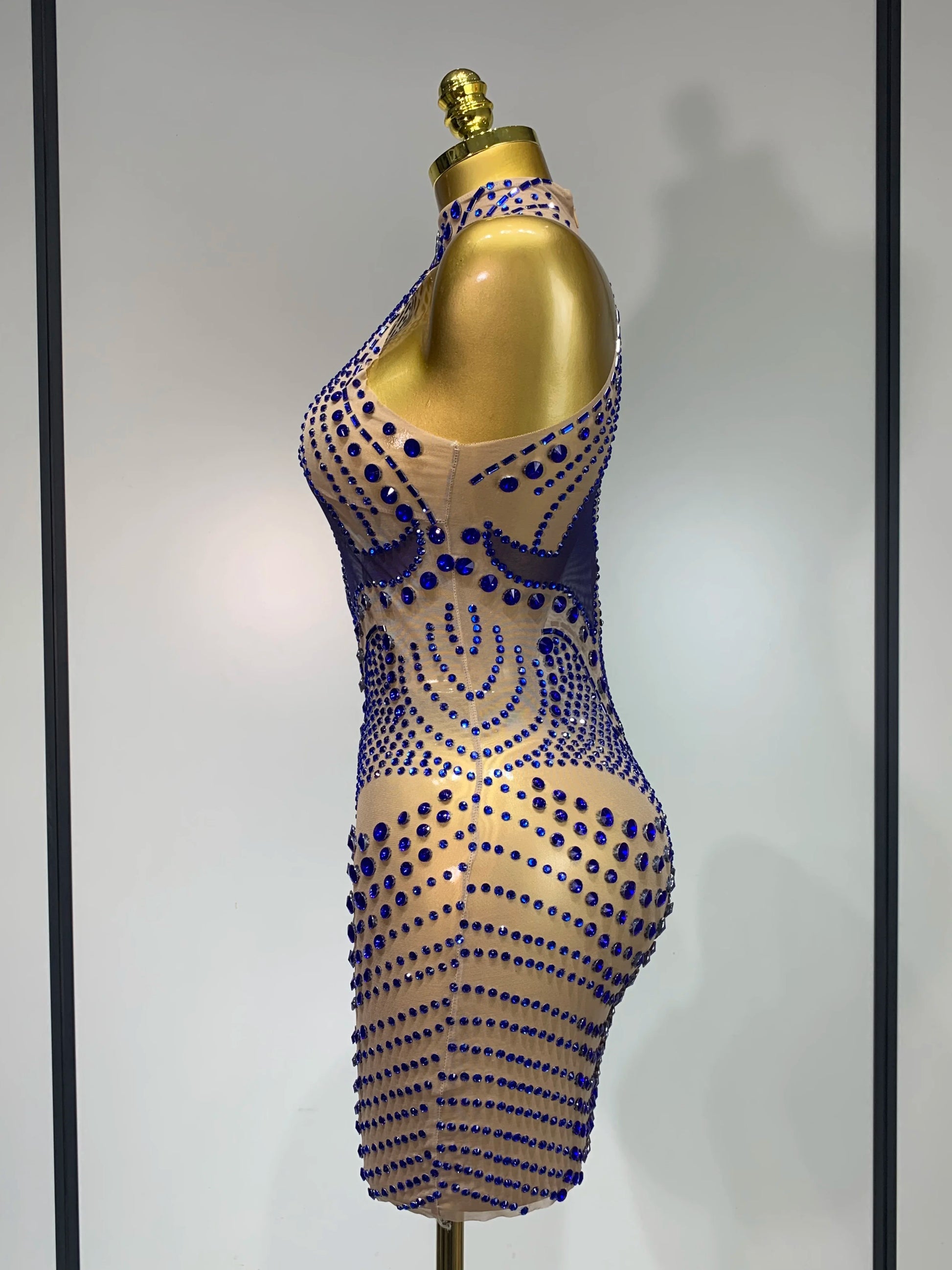 Luxury Birthday Dress Women Rhinestones Sexy Transparent Mesh Mini Dress Evening Party Nightclub Stage Performance Costume