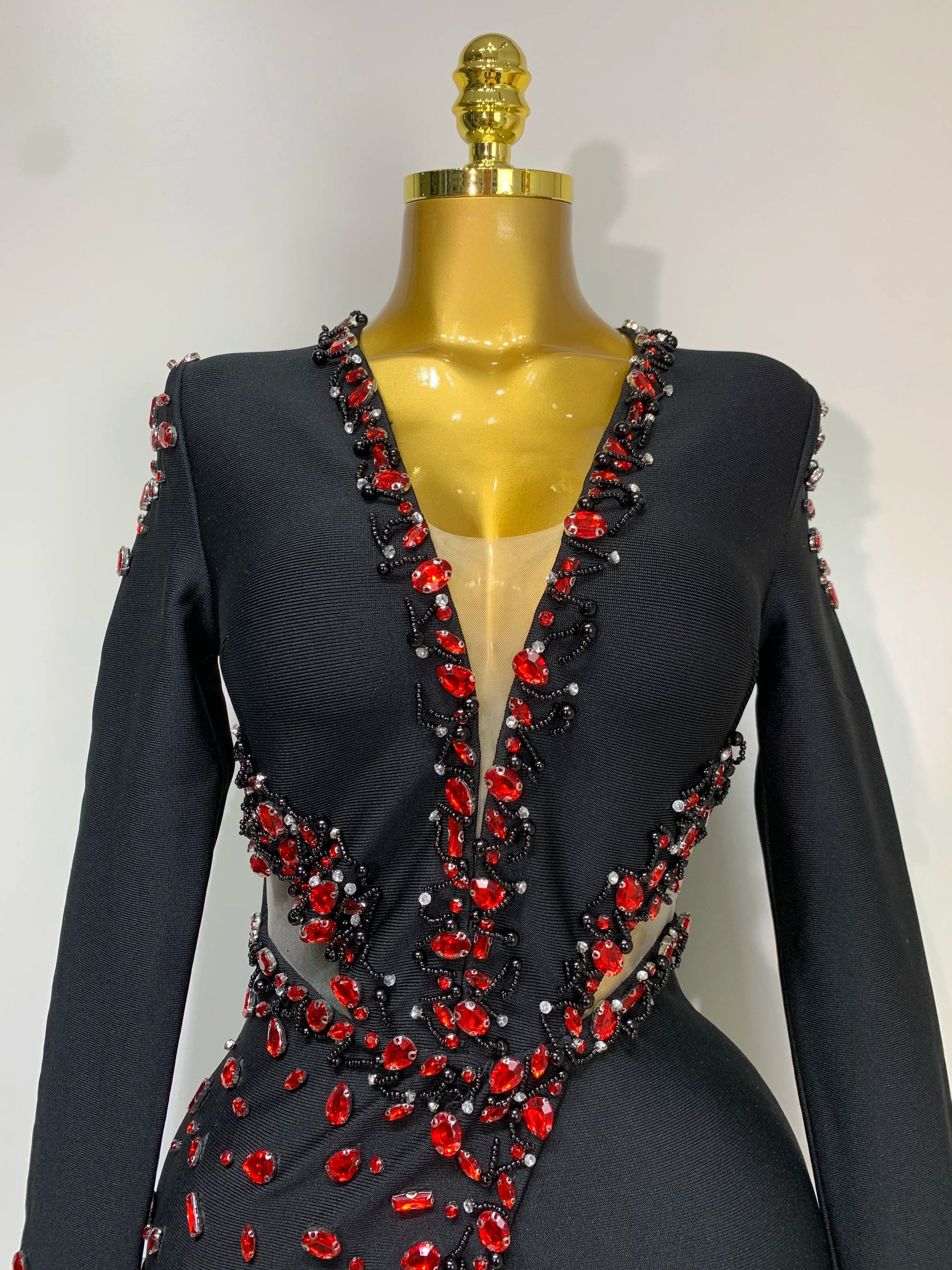 Luxury Birthday Women Celebrity Sexy Long Sleeve V Neck Rhinestone Black Bandage Dress 2025 Elegant Evening Club Party Dresses