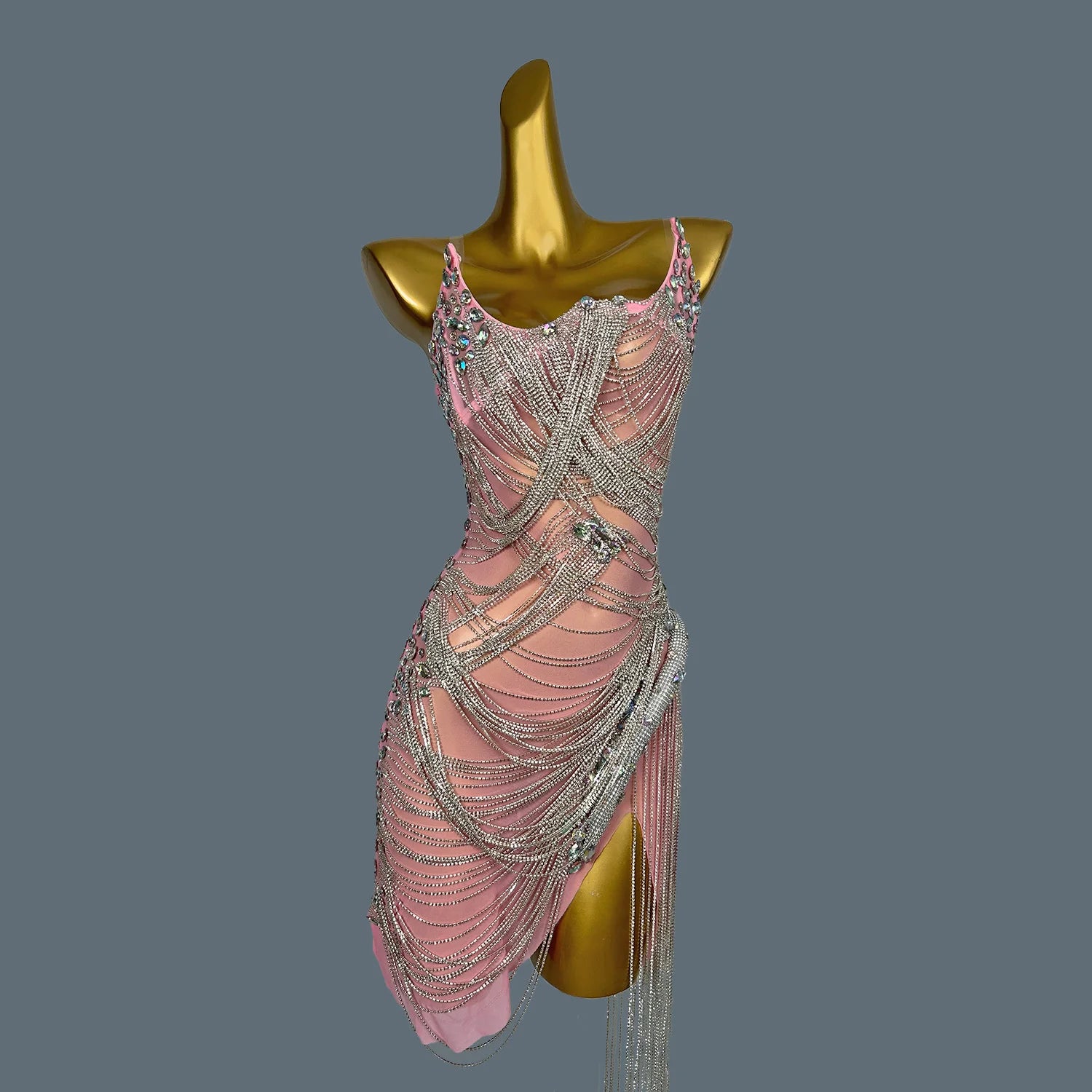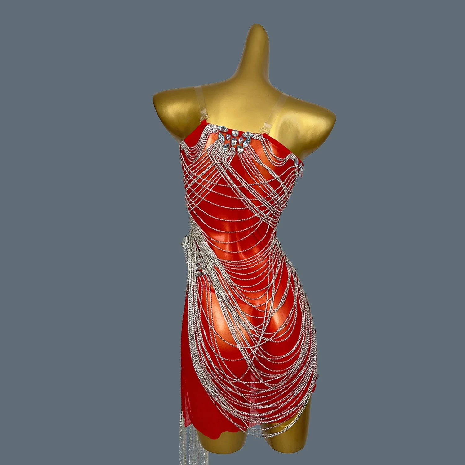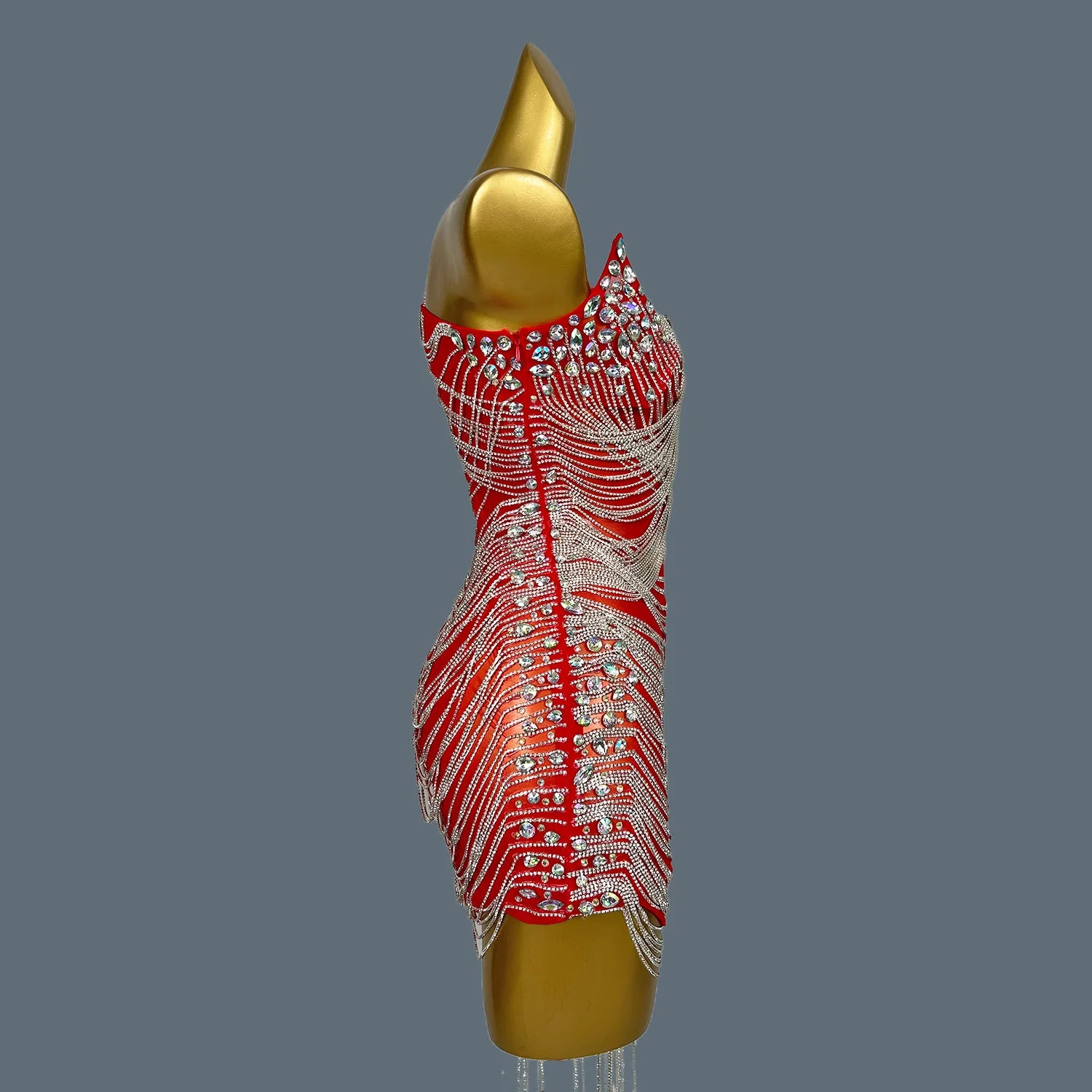Luxury Dinners Women's Elegant Mini Dress Bar Sparkly Rhinestone Tassel Noble Evening Gown Party Nightclub Dance Sexy Wear Luoli