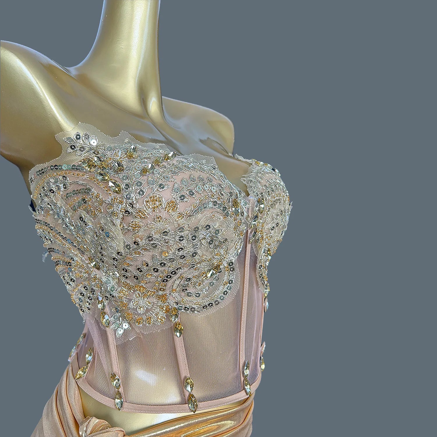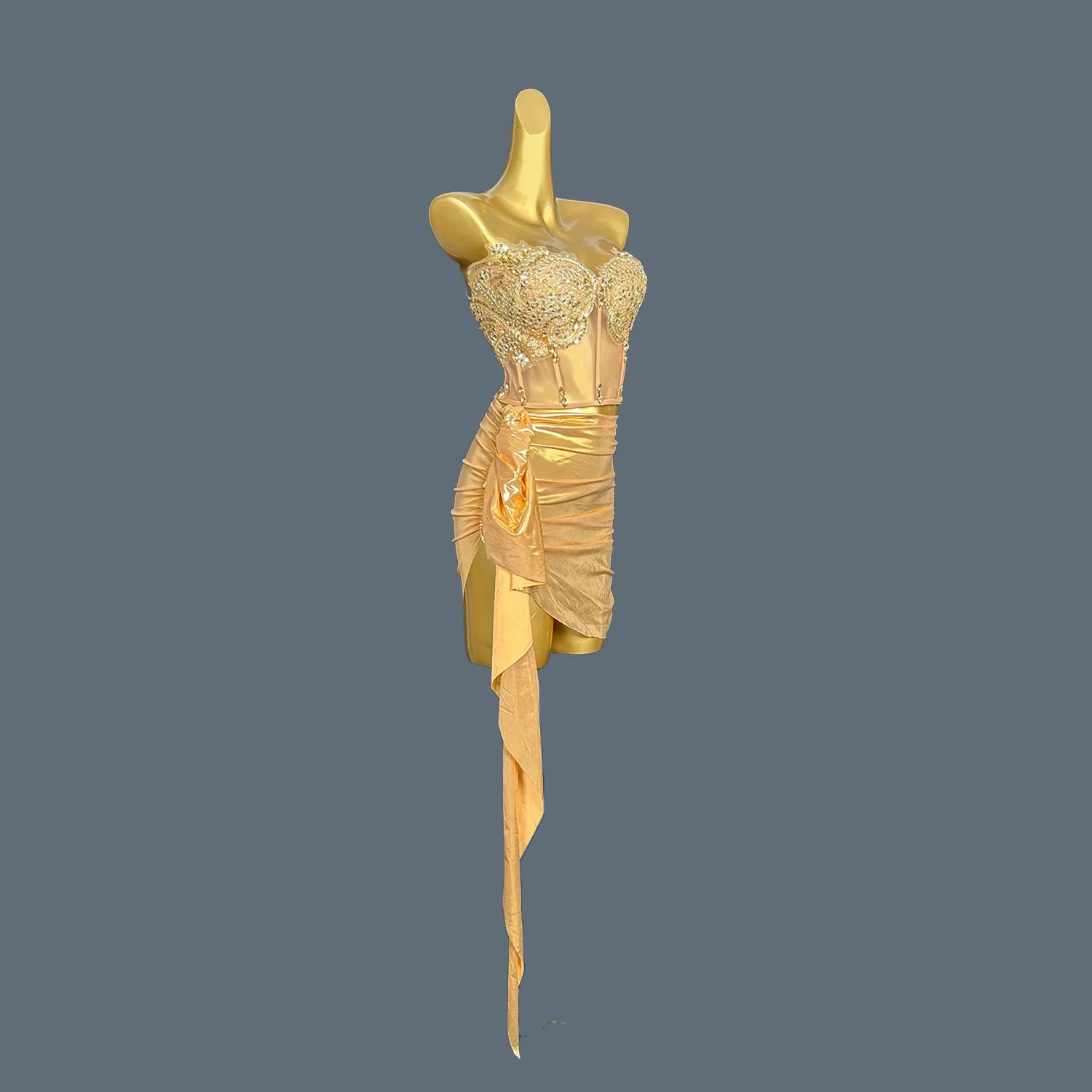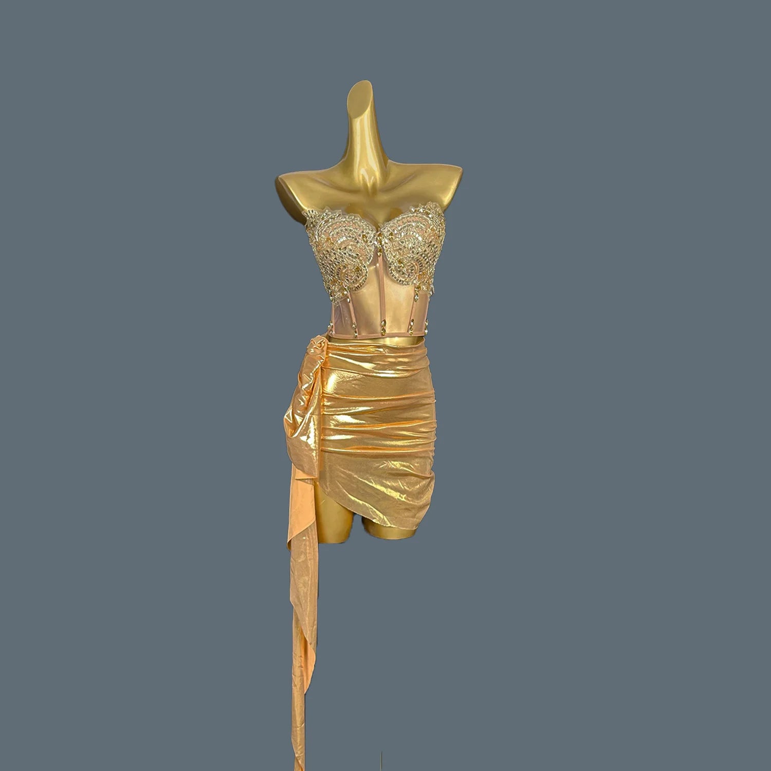 Luxury Gold 2-Piece Set Prom Gown Outfit Formal Occasion Cocktail Dress Sexy Girls Short Prom Dress Birthday Mini Dress Huangjin