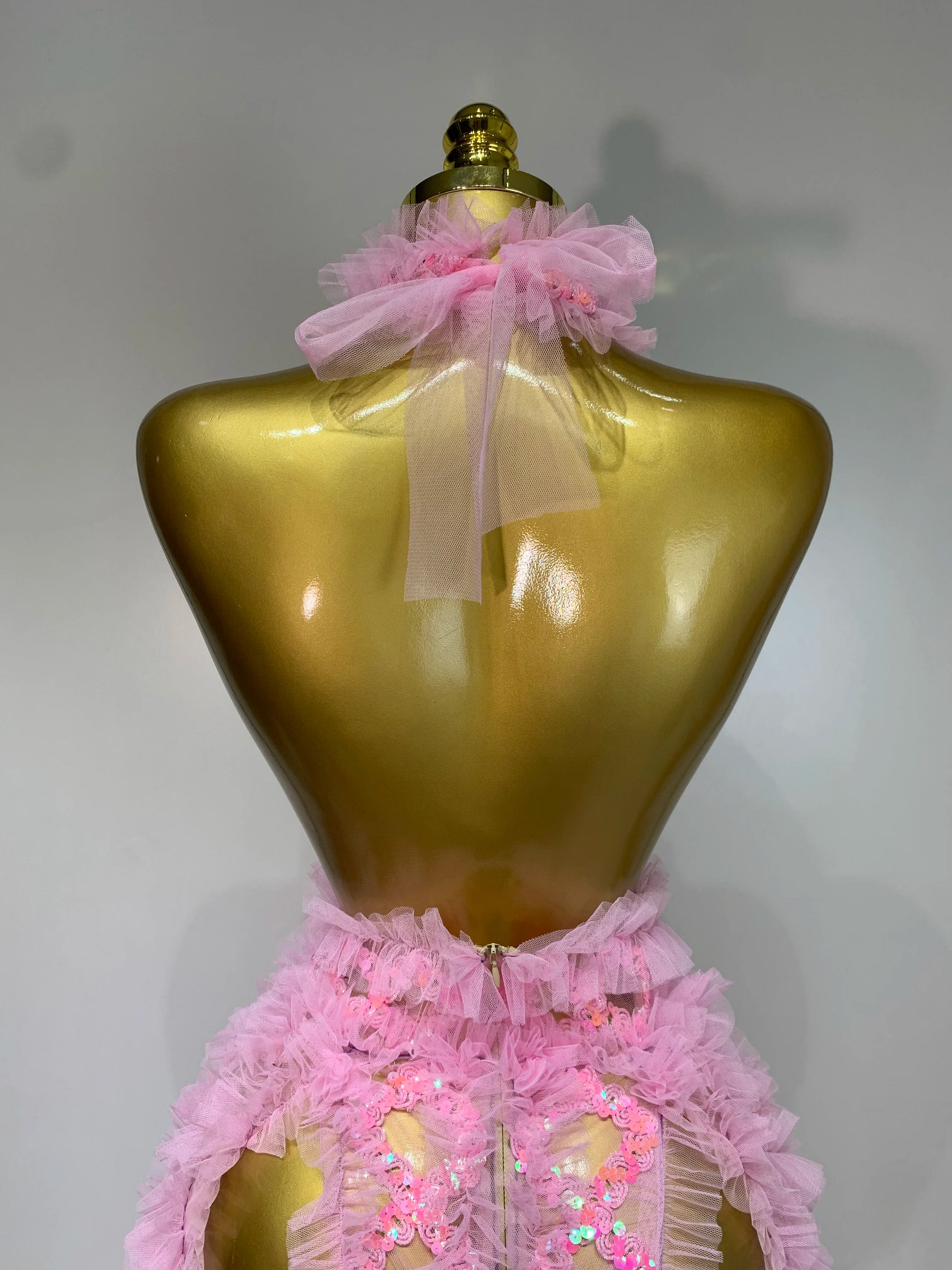 Mesh Sequins Sexy Backless Halter See Through Dress 2025 Birthday Evening Party Prom Nightclub Singer Stage Performance Costume