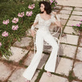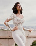 Monos sexys para vestido de novia, manga larga, encaje, apliques, cuentas, satén, bohemios, vestidos de novia, vestidos de novia