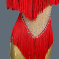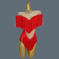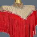 Nightclub Show Stage Performance Costume Rhinestone Red Tassel Bodysuit Women's Sexy Dance Leotard Dance Troupe Outfit Caizhuang