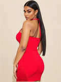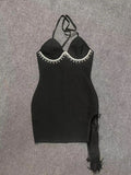 Red Black Women Sexy Halter Off the Shoulder Bodycon Mini Bandage Dress Tassel Celebrate Nightclub Party Bar Singer Outfit