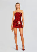 Red Gold Sequins Shinning Sexy Strapless Bodycon Mini Dress Nightclub Party Celebrate Birthday Date Dress Vestido