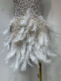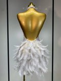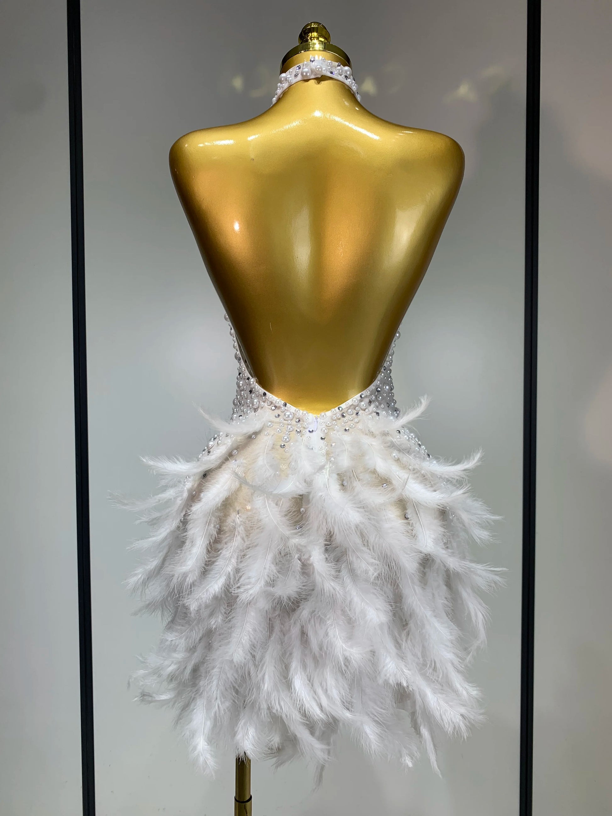 Sexy Halter Backless Feather Pearl Short Party Dress Women Luxury Rhinestone Celebrate Birthday Outfit Performance Dance Costume