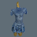 Sexy Nightclub Leotard Shining Lovely Sequins Mini Dress Costume Celebrate Dress Women Bodysuit Birthday Silver Dresses Jinsique