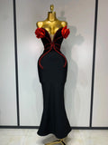 Sexy Strapless Flower Appliques Sexy Diamond Bodycon Bandage Mermaid Dress Celebrity Evening Runway Party Club Birthday Dress