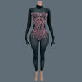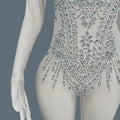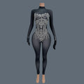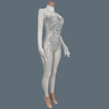 Sexy Women Long Sleeve Rhinestone Jumpsuit Gloves Festival Celebrate Party Outfit Club Stage Show Tight Fitting Jumpsuit Zhubao