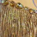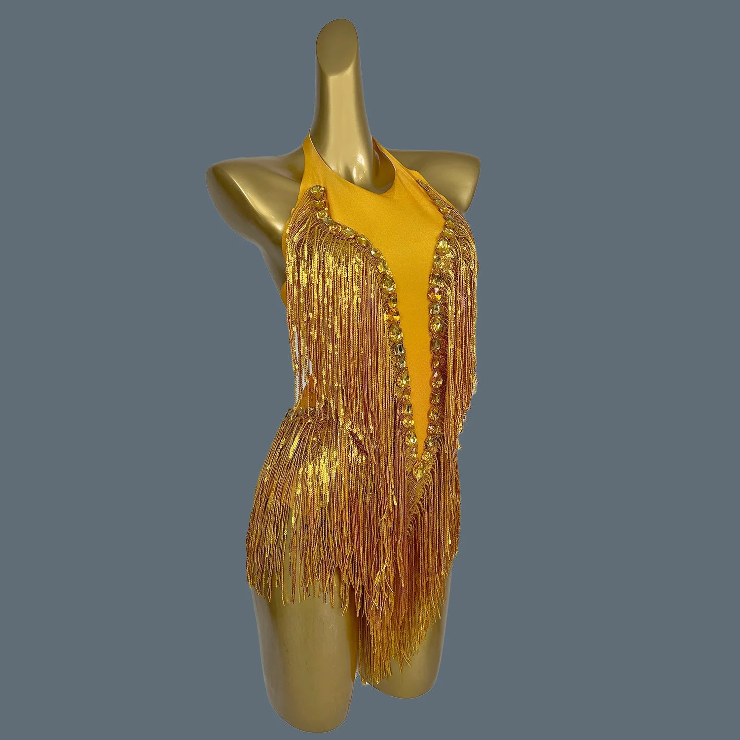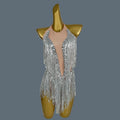 Sparkly Gold Rhinestone Tassel Tight Fit Bodysuit Women Dance Outfit Nightclub Bar Performance Costume Stage Wear Shuye