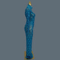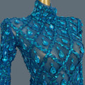 Sparkly Rhinestone Long Sleeved Mesh Dress Luxury Dinner Birthday Celebrate Prom Elegant Sexy Women Skinny Ball Dress Shaokaojia