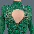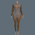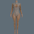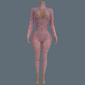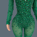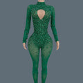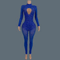 Sparkly Rhinestone See Through Mesh Tight Fitting Jumpsuit Women Night Party Outfit Female Singer Stage Performance Wear Cuican