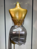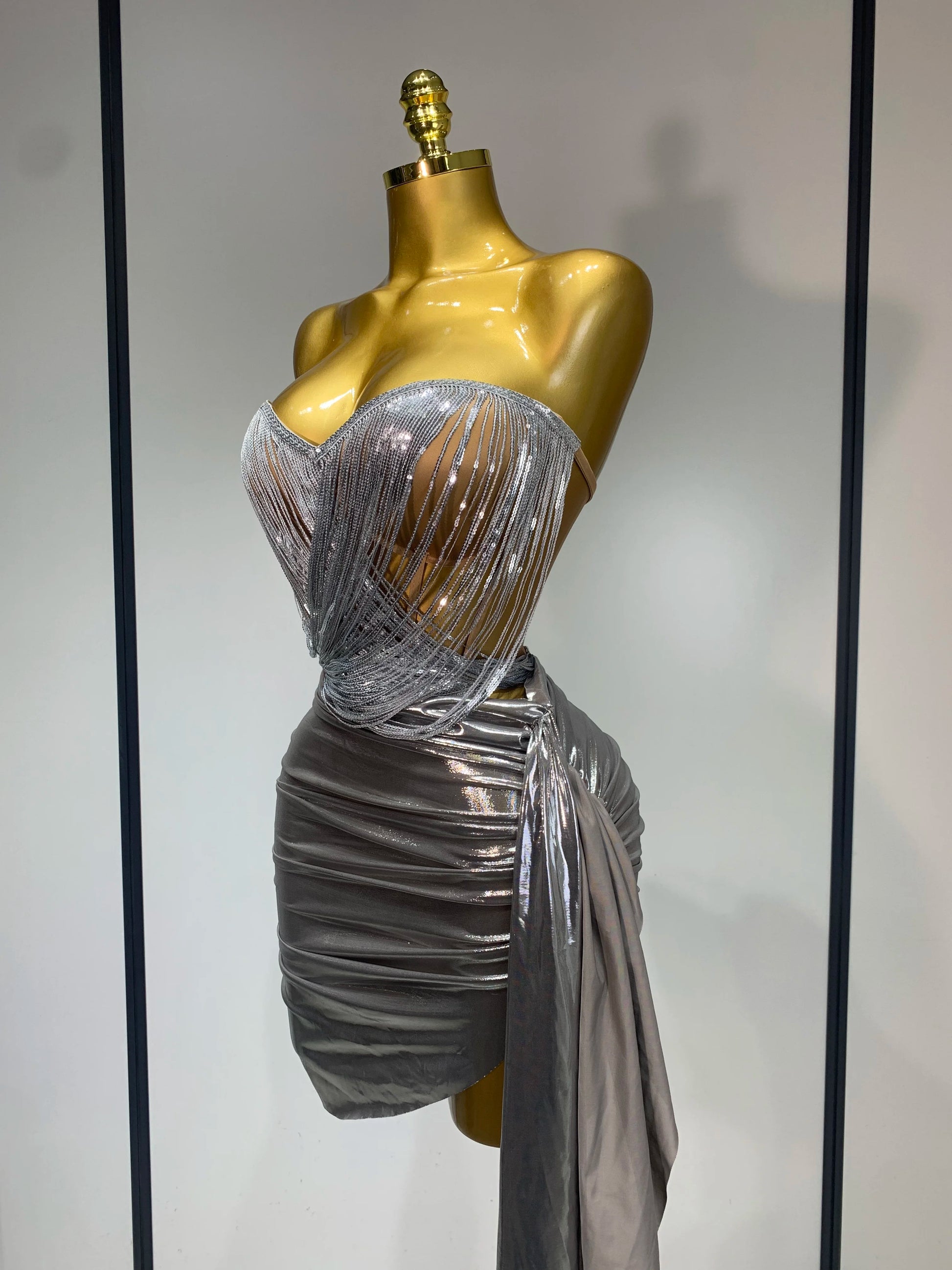 Sparkly Sequin Two Piece Set Sexy Strapless Backless Women Outfit Evening Party Nightclub Stage Performance Dance Costume