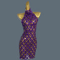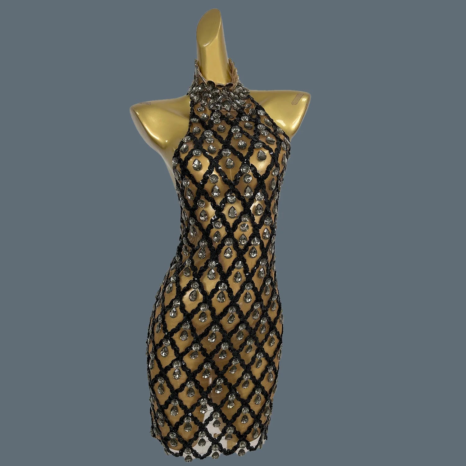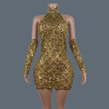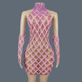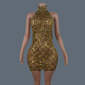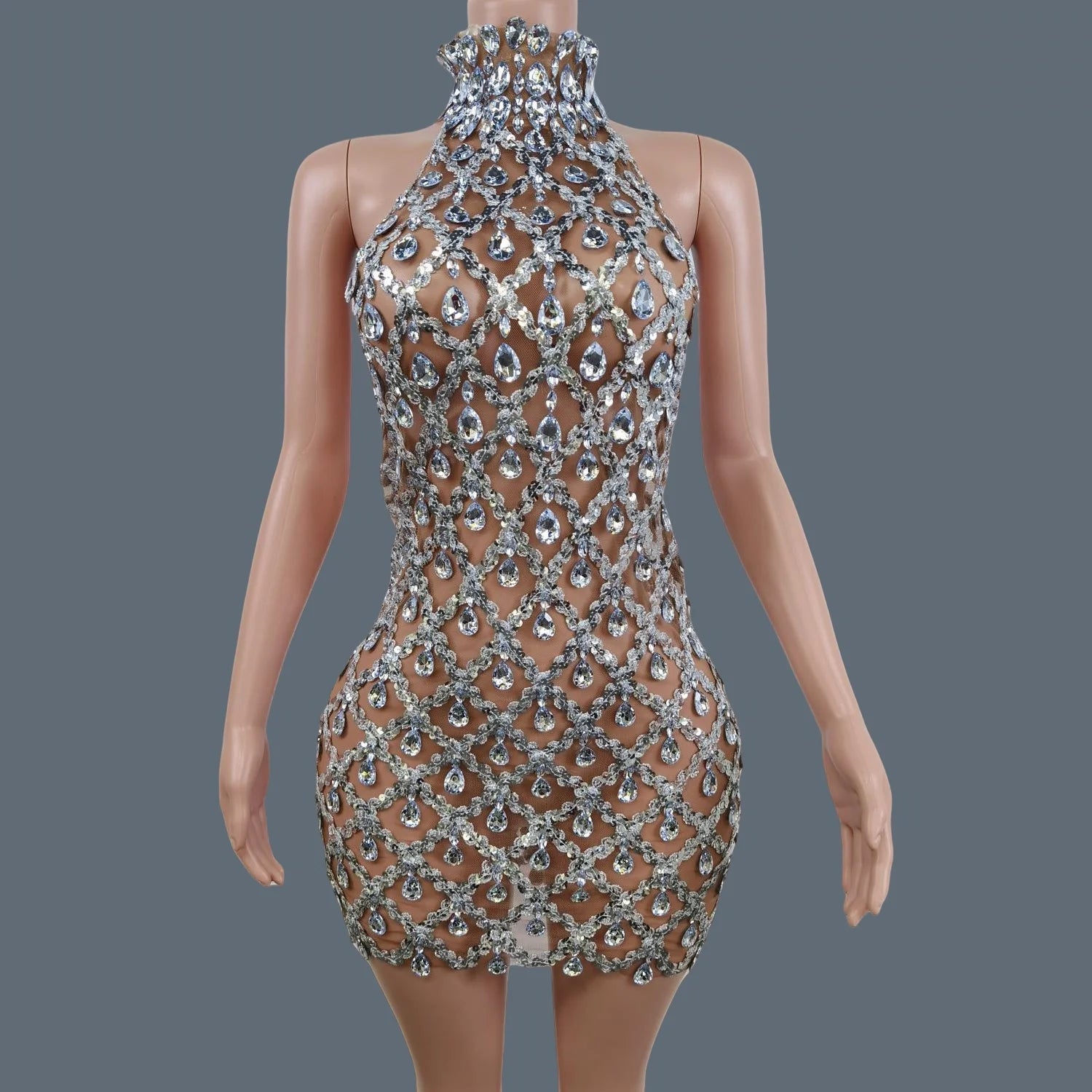 Sparkly Sequins Crystals Summer Mini Dress Sexy Sleeveless See Through Mesh Women Party Dress Event Singer Show Wear Shaokaojia