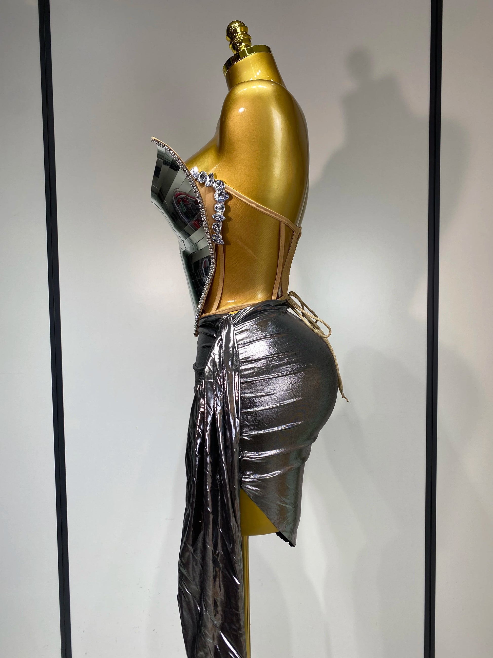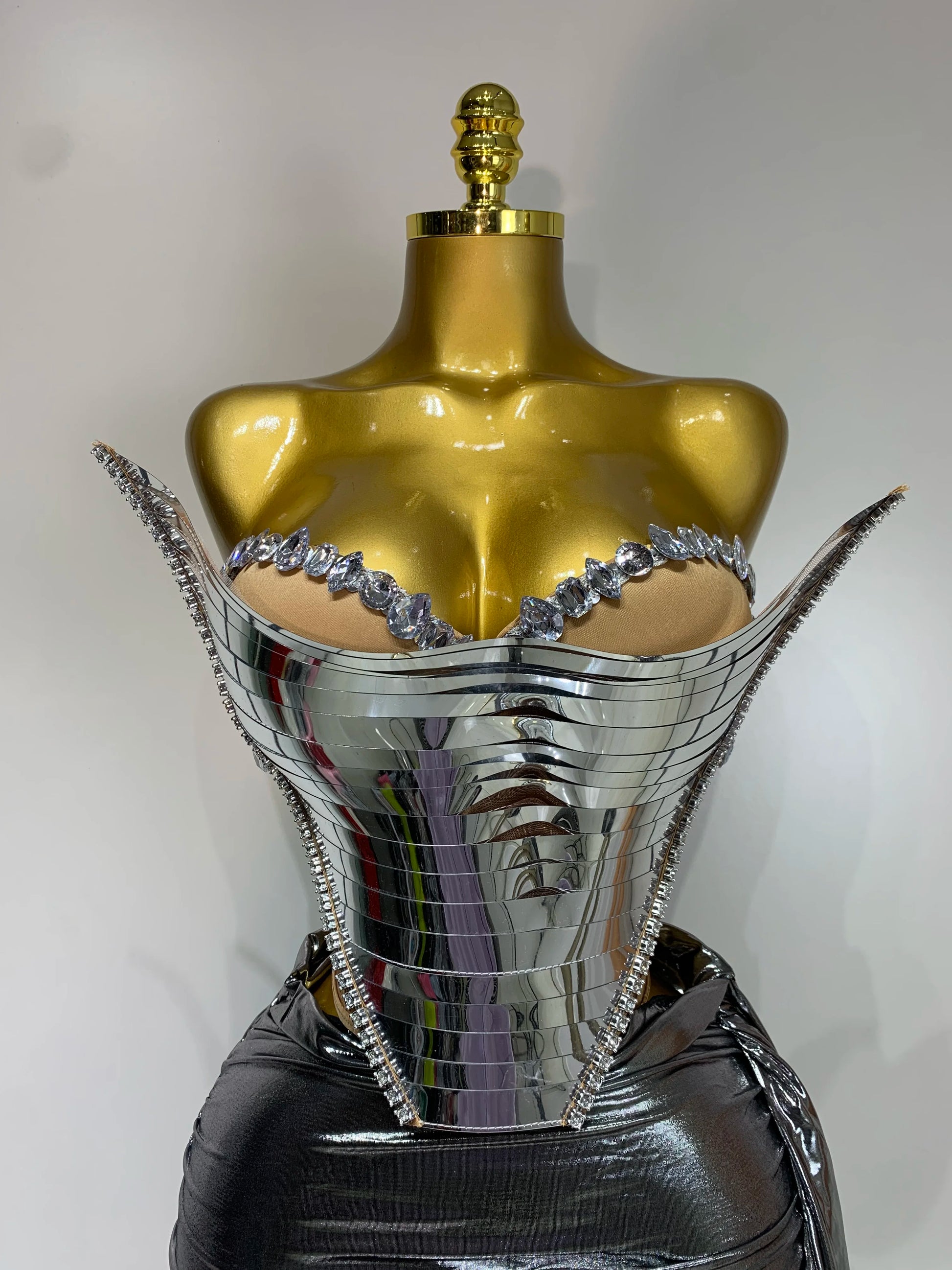 Sparkly Sliver Sequin Sexy Top Two Pieces Set Women Celebrate Party Luxury Birthday NightClub Performance Dancer Stage Outfit