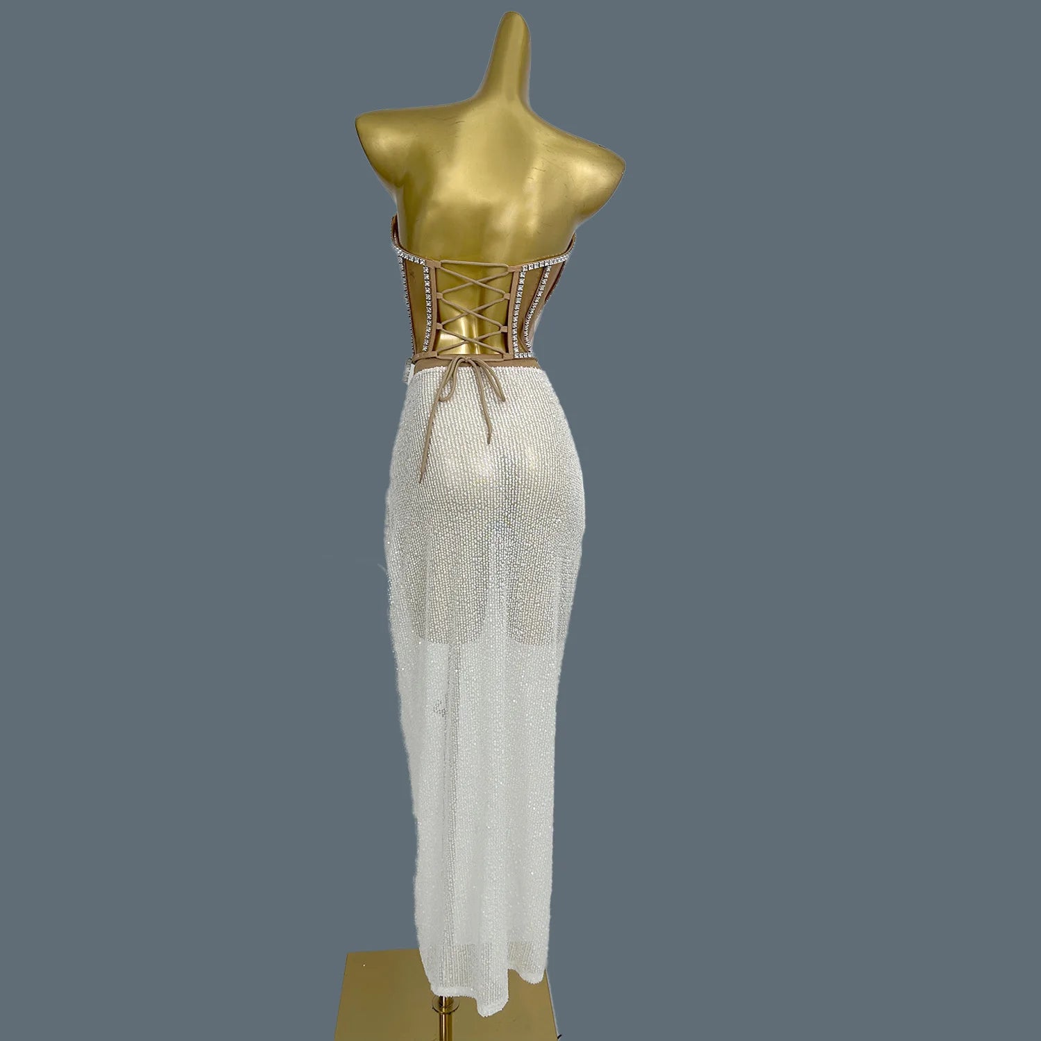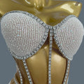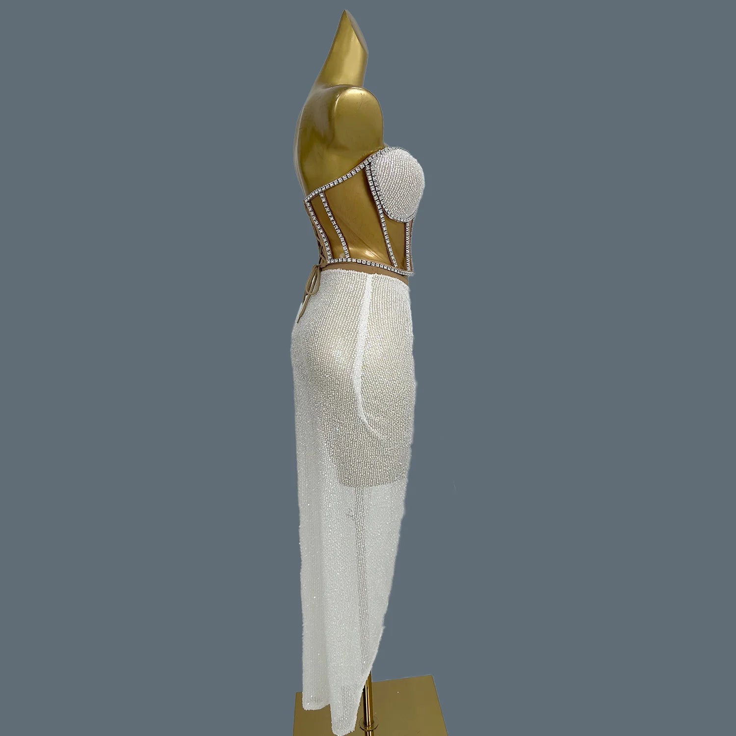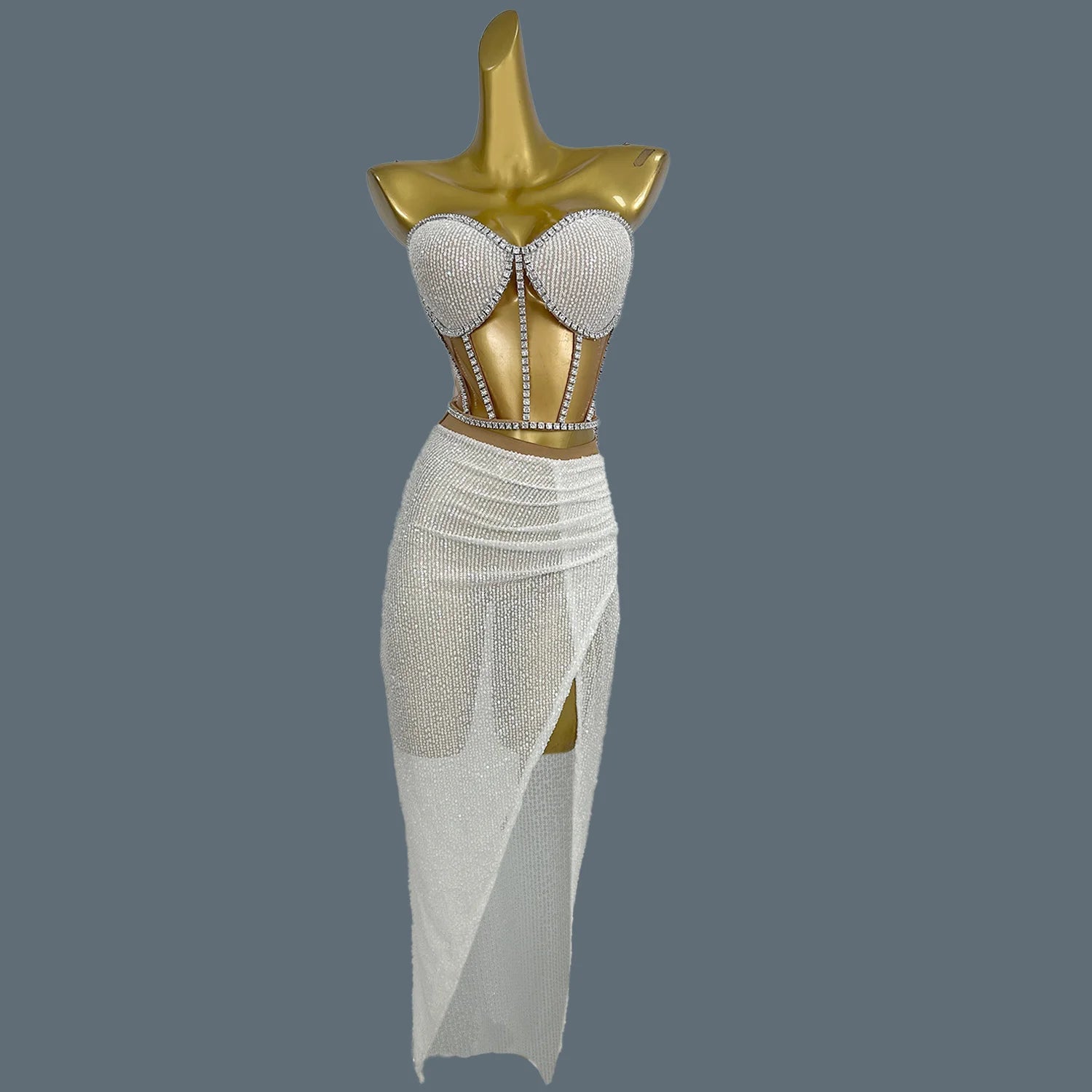 Stunning Sparkly Rhinestone Sequins Streamer Theme Party Hollow Out Tops Skirt 2Pieces Set Suit Festival Event Bodycon Tangguo