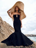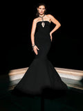 VC Black Sleeveless Mermaid Bandage Long Dress Sexy Key Hole Open Back Floor Length Court Train Gown Evening Party Wear