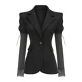 VC Black V Neck Long Sleeves Blazer With Rhinestones Embellished Cuff Crystals Patchwork Slim Jacket Single Breasted Coat
