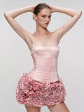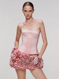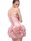 VC Dreamy Adorable Pastel Pink Two-Piece Set Dress Halter Corset Top and Ruffled Mini Skirt for Trendy Occasions Evening Gown