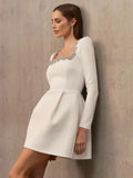 VC Elegant Dresses For Women Square Collar Long Sleeves Short A-Line Slim White Wedding Party Gown Fashion 2024