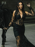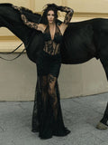 VC Fashion Party Dresses For Women Sexy Lace Halter Long Sleeves Gloves Design Maxi Gowns Vestidos