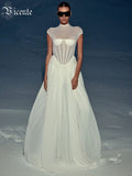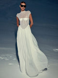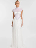 VC Romantic Ethereal High-Neck Bridal-Inspired Sheer White Maxi Dress for Wedding Party Evening Gown