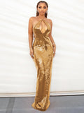 VC Women'S Gold Sequins Luxury Party Gown Sexy Backless Long Dress For Wedding Banquet Party Female Clothing