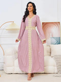 Vestido de fiesta de noche con estampado dorado y cinturón liso con abalorios para mujer africana del Golfo Abaya turca saudí Kaftan