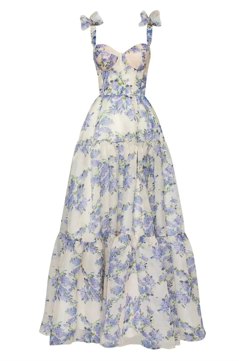 Vestido de fiesta de seda auténtica, estilo princesa, con flores de glicina y tirantes finos. Vestidos de fiesta de corte A.