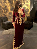 Morocco Caftan Evening Dresses V Neck Mermaid Prom Dress Velvet Long Sleeve Formal Evening Party Dress Burgundy
