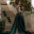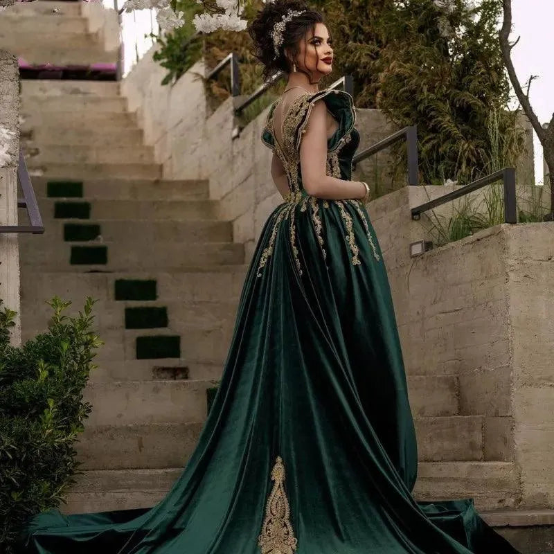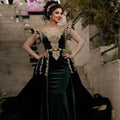 Vestido de noche caftán marroquí verde cazador de terciopelo con apliques de encaje, vestidos de fiesta árabes de Dubái para mujer