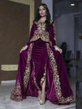 Vestido de noche estilo caftán argelino estilo sirena karakou, de terciopelo, manga larga, con apliques de encaje, estilo musulmán, para fiesta formal.