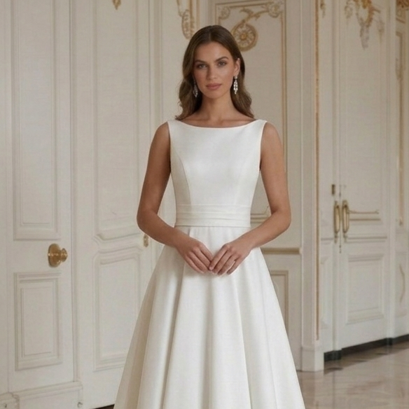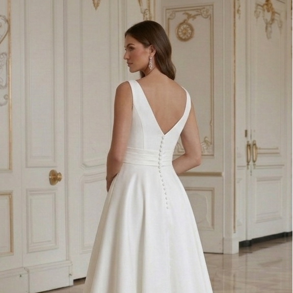 Accesorios no incluidos: velo, mangas, corona, etc.