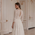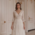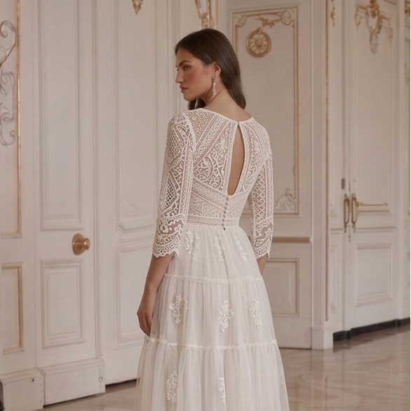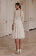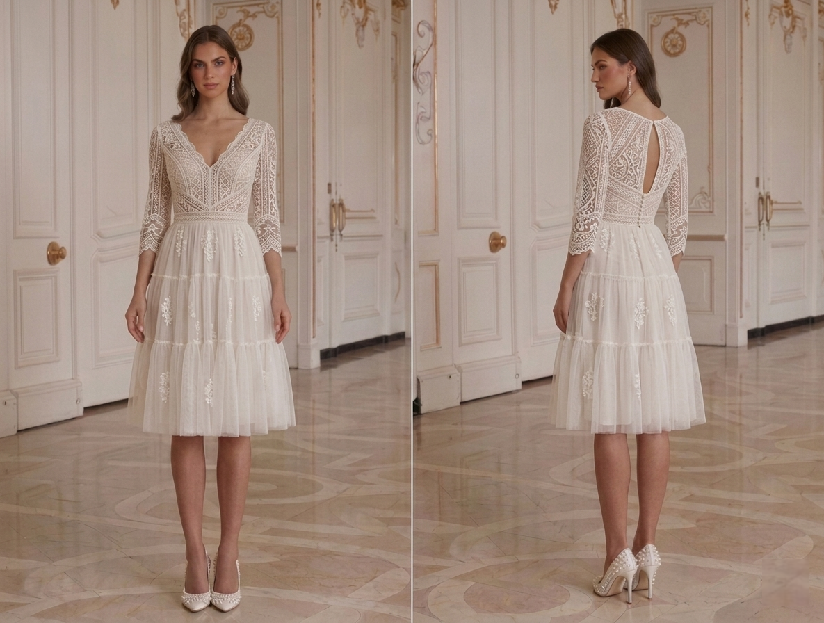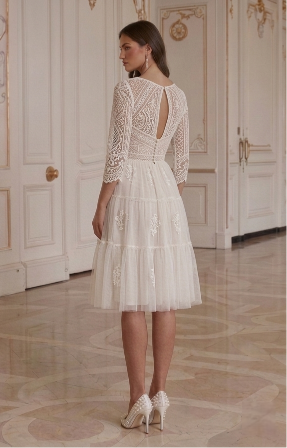 Vestido de Novia Corto Bohemio Manga de Encaje Nupcial