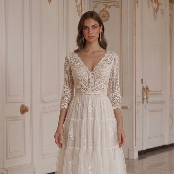 Every gown undergoes a meticulous creation process. Due to variations in lighting, display settings, and photography conditions, slight color differences may occur between product images and the actual dress. For the most accurate color reference, we recommend viewing on Apple devices.