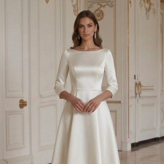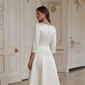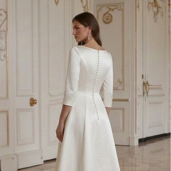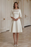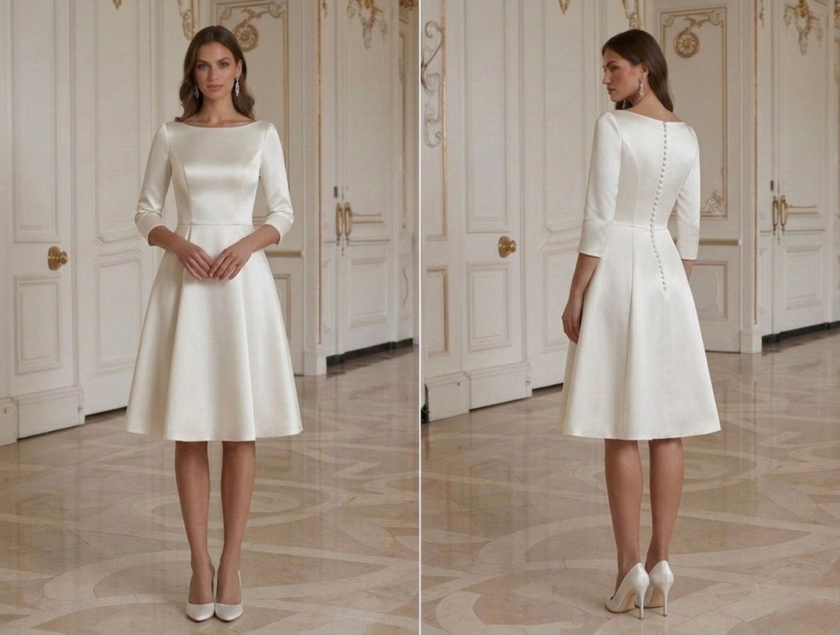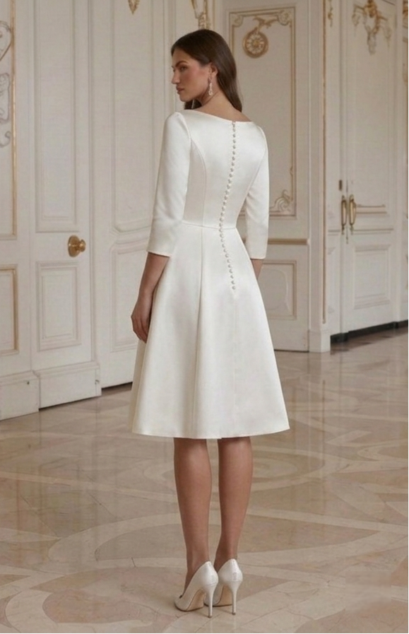 Vestido de Novia Corto Elegante Satén con Botones en la Espalda