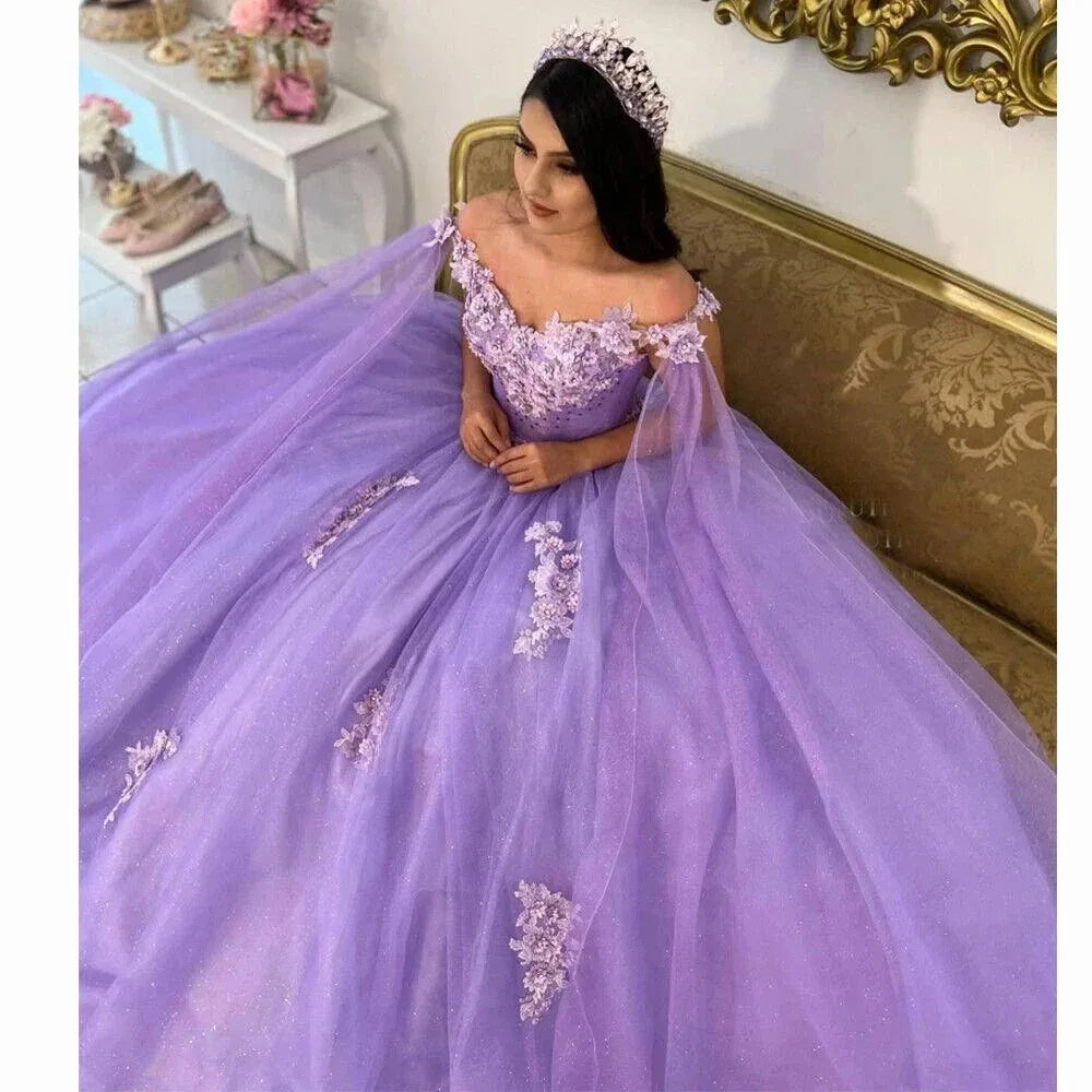 Quince Dress | Glittering Lilac Quinceanera Dresses With Cape Formal Birthday Party Ball Gown Vestidos De 15 Anosowns With Wrap