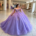 Quince Dress | Glittering Lilac Quinceanera Dresses With Cape Formal Birthday Party Ball Gown Vestidos De 15 Anosowns With Wrap picture lilac