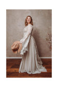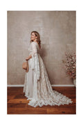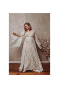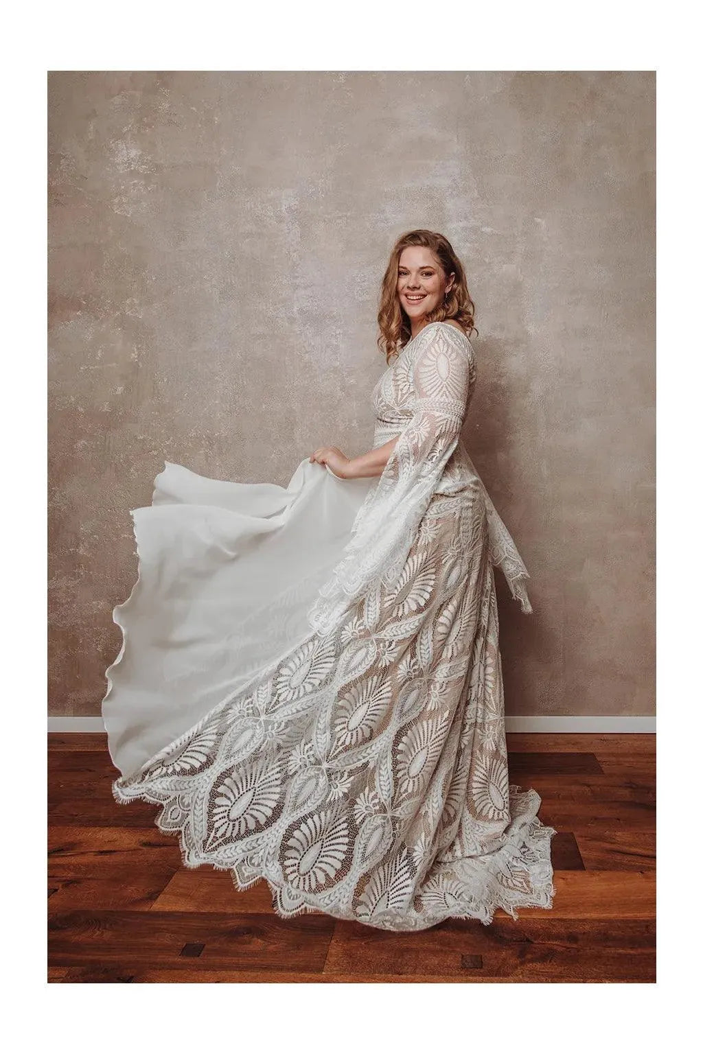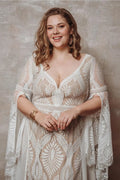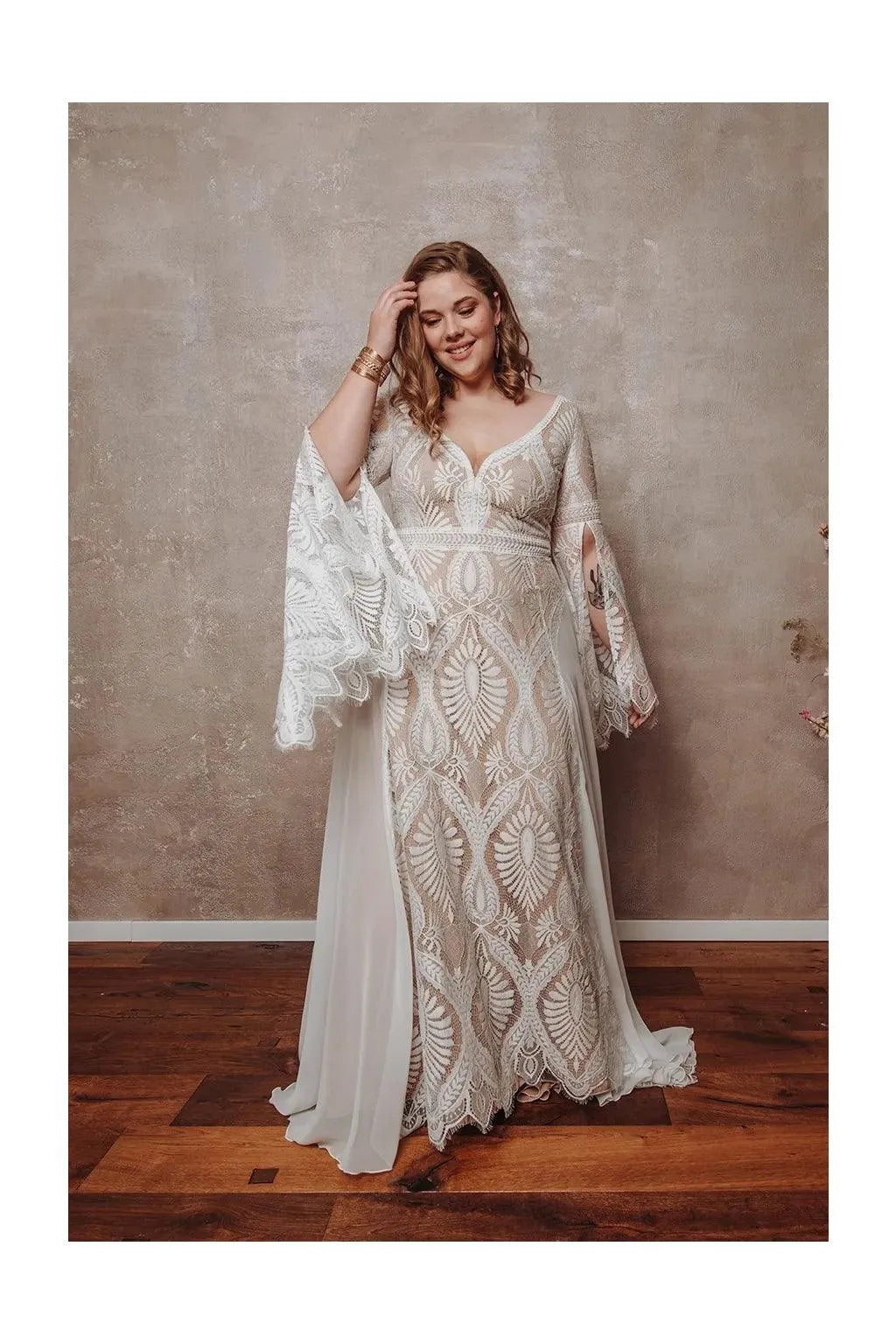 Vestidos de boda civil Boho encaje manga larga playa fluido vestido de novia de talla grande para mujer cuello en V vestido de novia bata bohemia femm