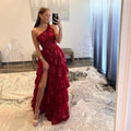Vestidos de fiesta de color rojo vino con encaje y lentejuelas, vestido de noche sin mangas con un hombro al descubierto y abertura lateral, vestidos de fiesta
