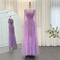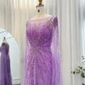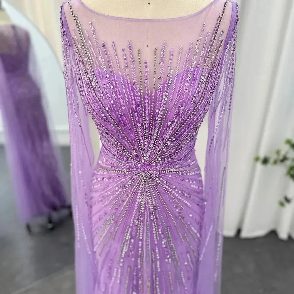 Vestidos de noche de lujo con plumas lilas de Dubái y mangas estilo capa, estilo árabe, largos, para mujer, para boda, fiesta y graduación.