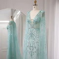 Vestidos de noche de sirena turquesa de Dubái de lujo con capa, escote en V, estilo árabe, gris plateado, para bodas y fiestas formales.