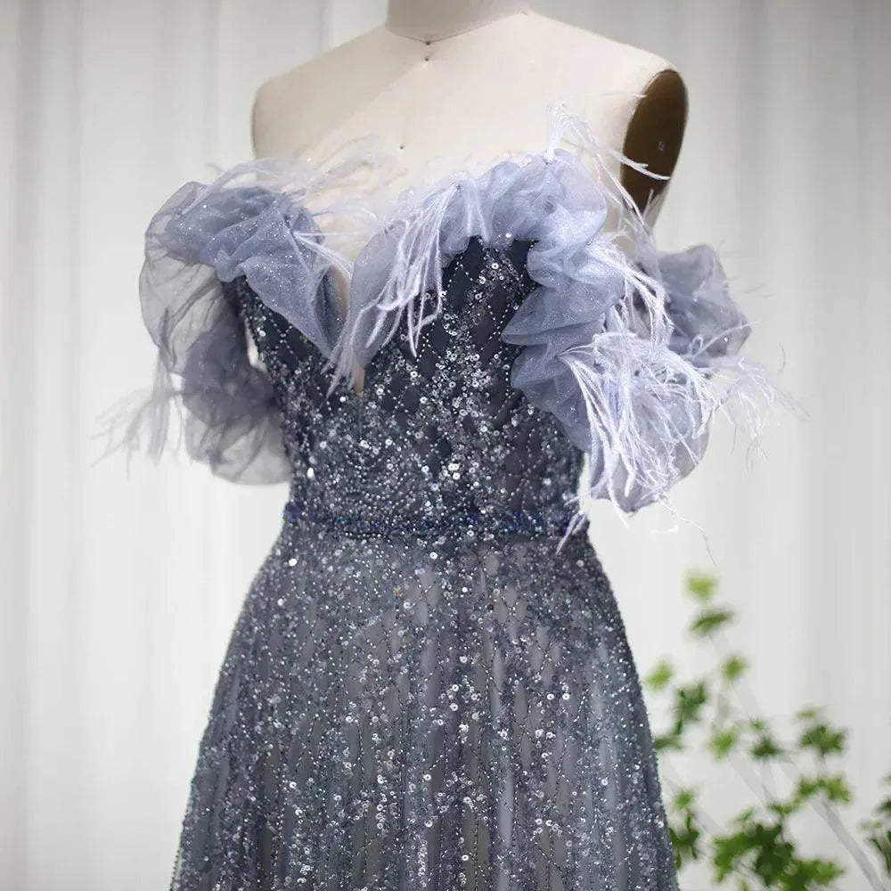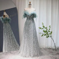 Vestidos de noche elegantes de Dubái con plumas verdes de lujo, vestido formal largo con hombros descubiertos para mujer, fiesta de boda