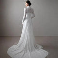 Vestidos de novia blancos modestos de corte A con encaje completo, mangas largas, cuello alto, cola larga, elegantes