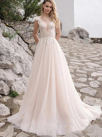 Vestidos de novia bohemios con escote en V y corte A, encantadores, sin mangas, espalda abierta, con apliques de encaje, vestidos de novia hechos a medida.