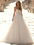 Vestidos de novia clásicos de corte A, sin tirantes, sin mangas, con apliques de encaje, túnicas exquisitas para novia.