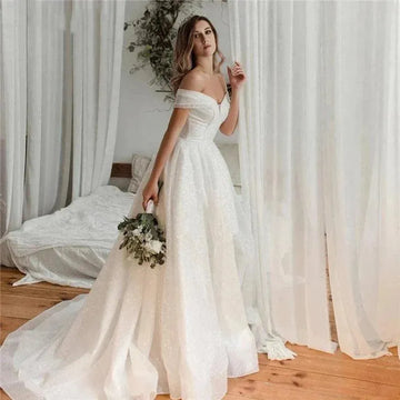 Vestidos de novia con escote corazón, elegantes vestidos de novia de gasa, vestidos elegantes de corte A para mujer, vestidos de novia con hombros descubiertos