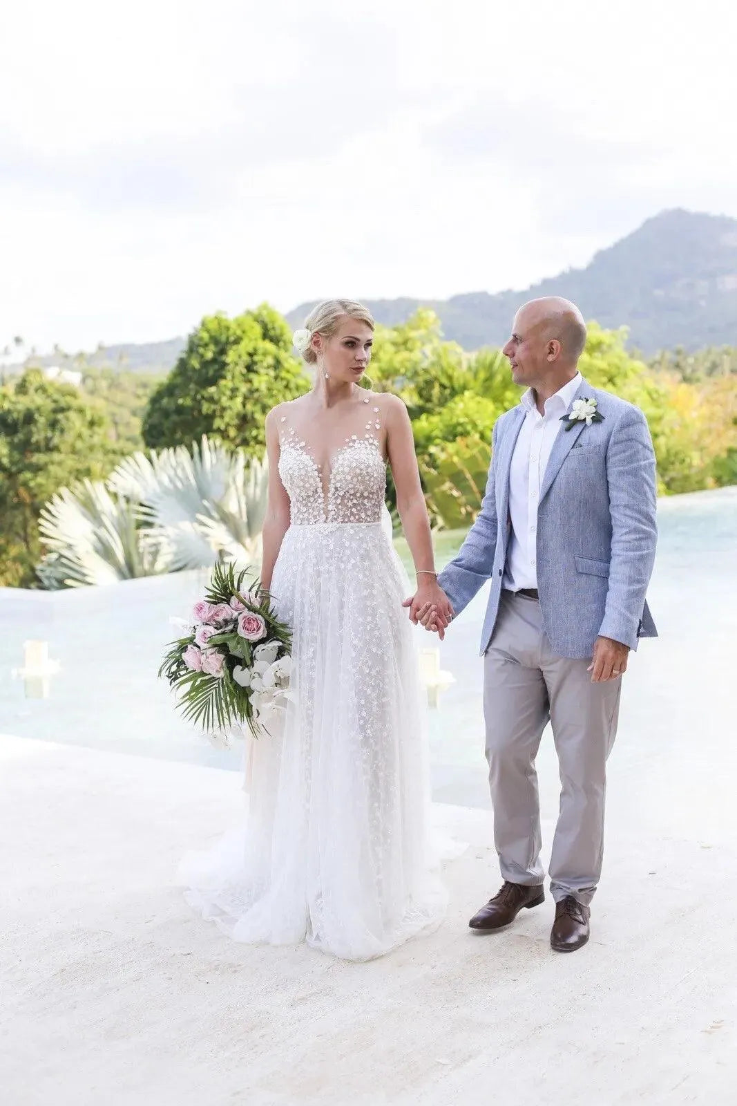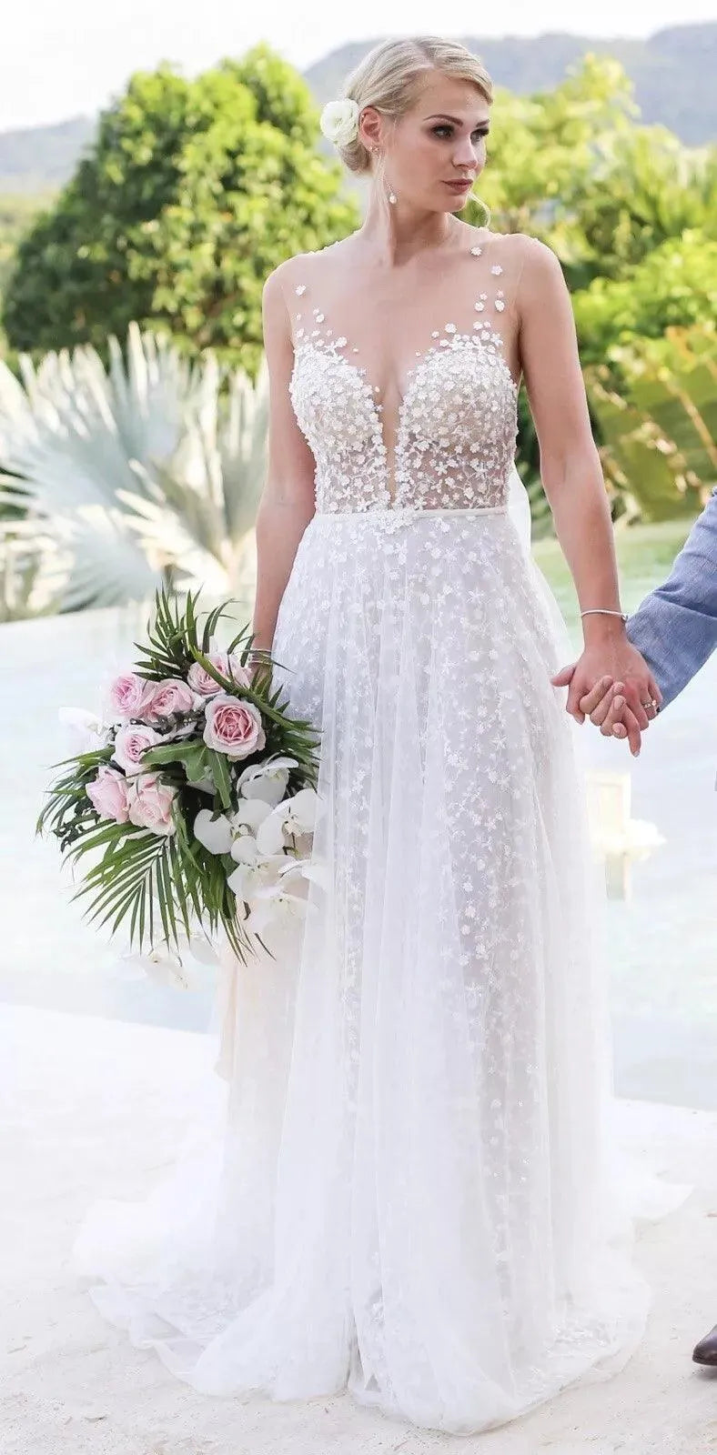 Vestidos de novia de encaje de corte A, vestido de novia de playa, vestido de novia bohemio hasta el suelo, vestido de fiesta de princesa encantador, talla grande