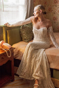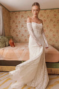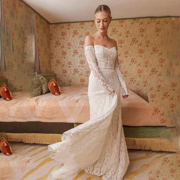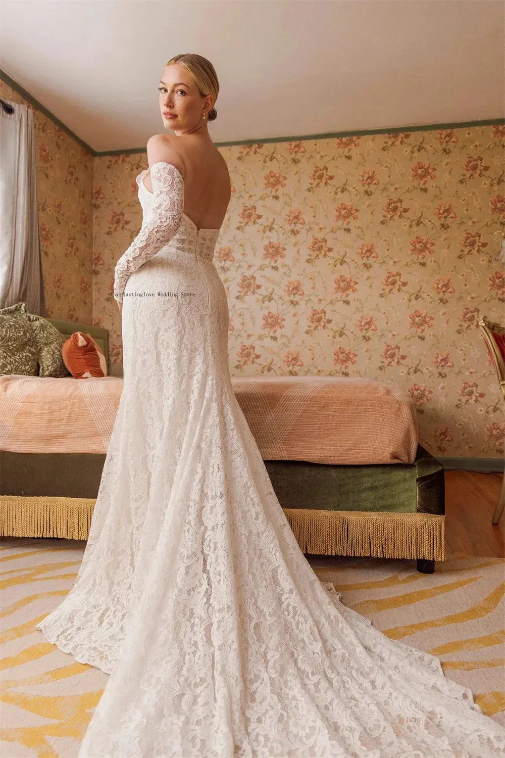 Vestidos de novia modernos de alta calidad con encaje de sirena, mangas largas desmontables, cola larga, hechos a medida