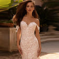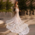 Vestidos de novia sexys de encaje de sirena, escote corazón, hombros descubiertos, cola, espalda descubierta, botones, bata de boda